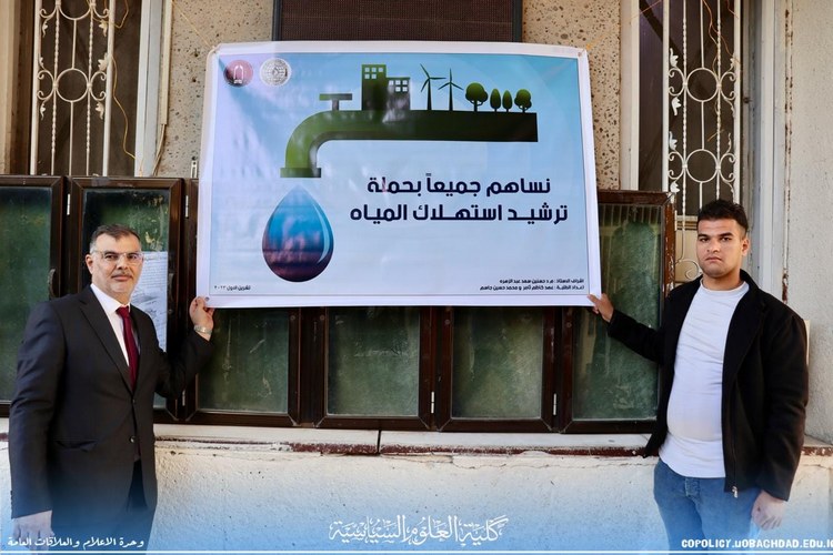 A number of students from the College of Political Science at the University of Baghdad organized volunteer extracurricular work on rationalizing water consumption.