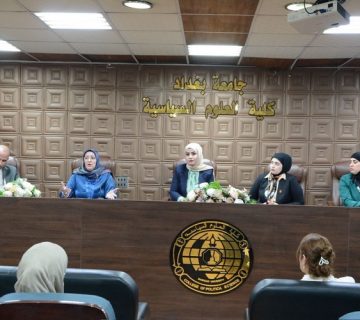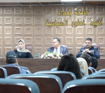 The College of Political Science at the University of Baghdad discussed the master’s thesis entitled “The Role of Local Governments in Confronting the Challenges of Iraqi Environmental Security after 2003” by the student “Sarah Muhannad Omar” and under the supervision of Professor Dr. “Omar Juma Omran.”