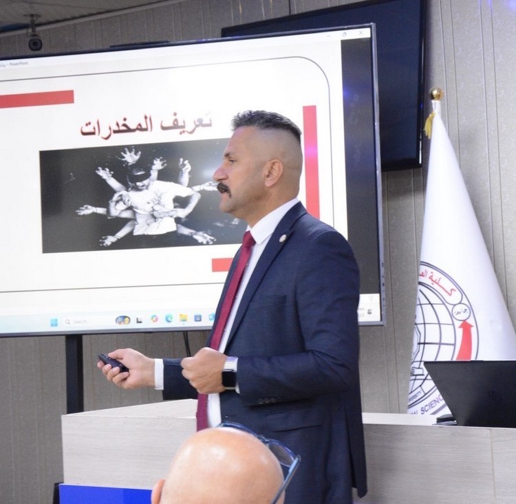 The workshop was delivered by a lecturer from the National Security Service, who discussed the types of drugs and psychoactive substances prevalent in society, the methods of promotion, and the ways vulnerable groups are targeted. As well, he highlighted the health, psychological, and social effects that lead to family disintegration, rising crime rates, reduced productivity, and threats to community security and stability. The presentation also reviewed the security efforts to combat this phenomenon through the pursuit of drug trafficking and promotion networks, as well as by enhancing preventive and awareness initiatives in cooperation with educational institutions.