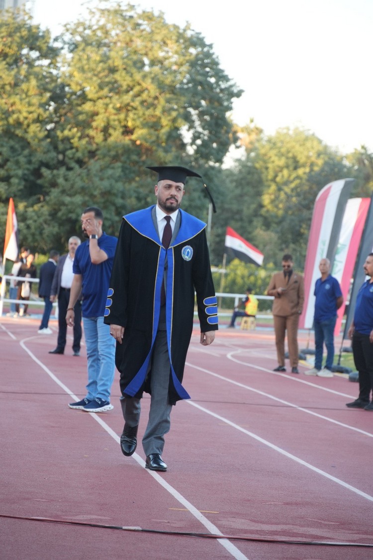 The Dean of the College of Political Science at the University of Baghdad, Assistant Professor Dr. Adel Abdul Hamza Al-Badawi, participated in the central graduation ceremony for the 2024/2025 academic year, “Excellence and Creativity.” He represented the college with his official presence and honored this prominent event, in which the university celebrated the graduation of a class of its distinguished students.