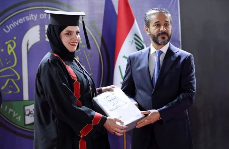 During the ceremony, the top-performing students were honored by the Minister of Higher Education and Scientific Research, Dr. Naeem Al-Aboudi, in recognition of their academic excellence and distinction.